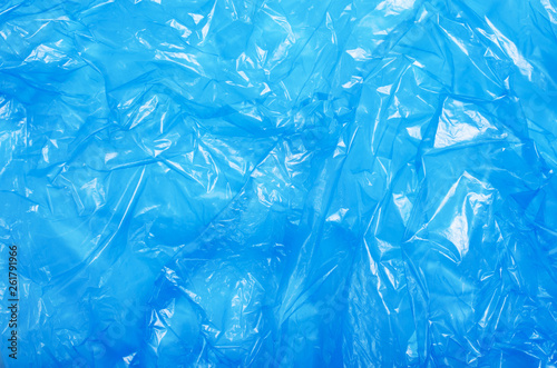 Obraz premium Blue Plastic Bag, Crumpled Cellophane Texture Background