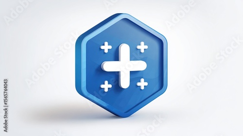 © Toko, Obraz premium Blue plus icon enhancement stands out against blurred soft white background for graphics