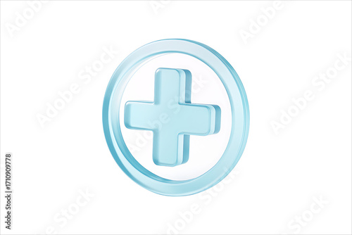 © Mohitos, Fototapeta premium Blue Plus Icon, Translucent Blue Plus Icon in Circular Frame