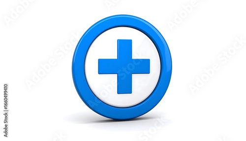 © Scoopy, Obraz premium Blue Plus Sign Icon 3D Render.