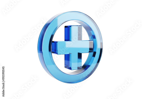 Fototapeta premium Blue plus sign icon in a circle on transparent background isolated