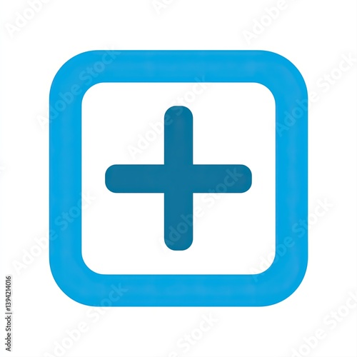 © sakon, Fototapeta premium Blue Plus Sign Icon in Rounded Square Frame on White Background