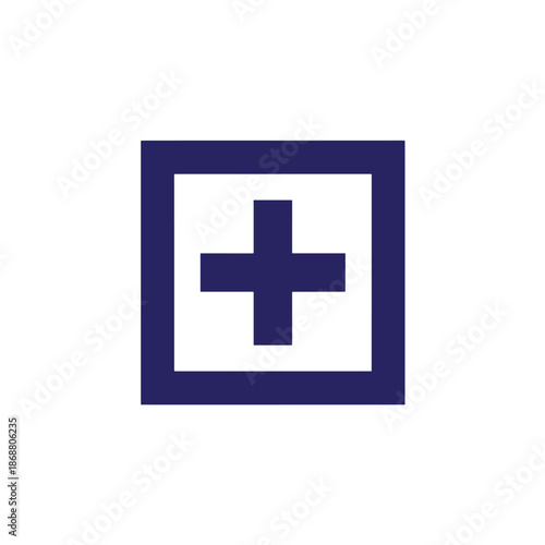 Fototapeta premium Blue plus sign inside square frame icon for medical or add