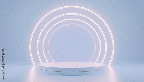 © Roch, Obraz premium Blue podium stage 3D render background, advertising display with blank backdrop