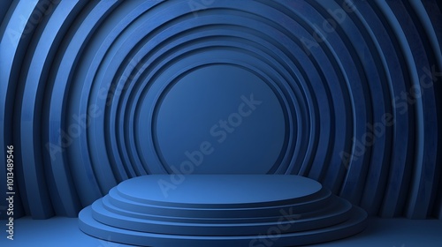 © Berkah, Obraz premium blue podium with circles background.