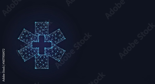 Obraz premium Blue polygonal medical star symbol on dark blue background