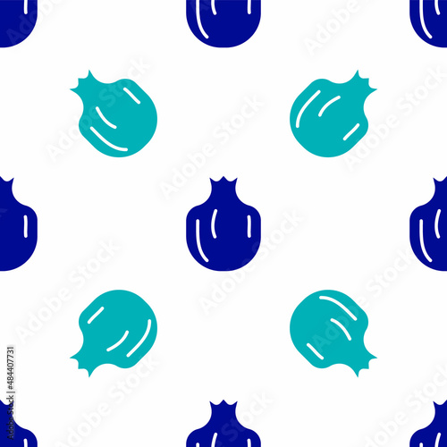 © Kostiantyn, Obraz premium Blue Pomegranate icon isolated seamless pattern on white background. Garnet fruit. Vector