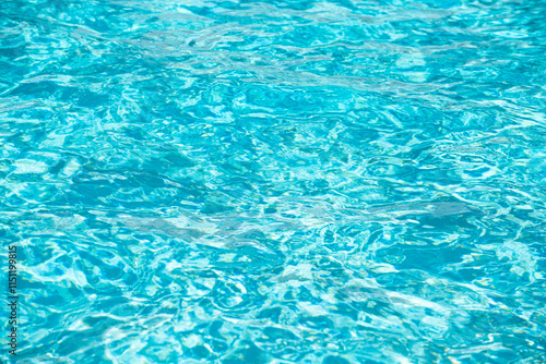 Obraz premium Blue pool water background. Blurred transparent clear calm water surface texture. Water waves in sunlight with copy space.