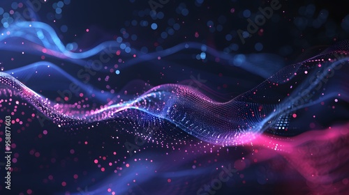 © Philip, Obraz premium Blue purple wave line light gradient dark background. Abstract technology big data digital background. 3D rendering.