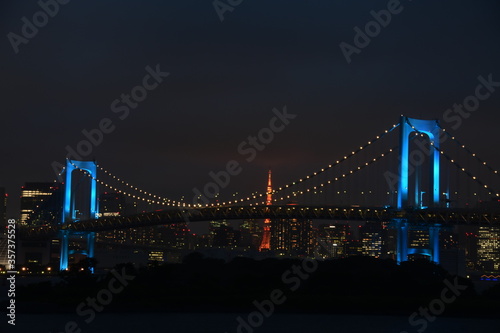 © kubocyannn, Obraz premium Blue rainbow bridge in Tokyo