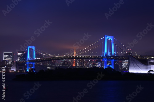 © kubocyannn, Obraz premium Blue rainbow bridge in Tokyo