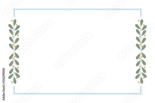 © Agustin, Obraz premium Blue Rectangular Borders Frame With Yellow And Green Leaves Decoration