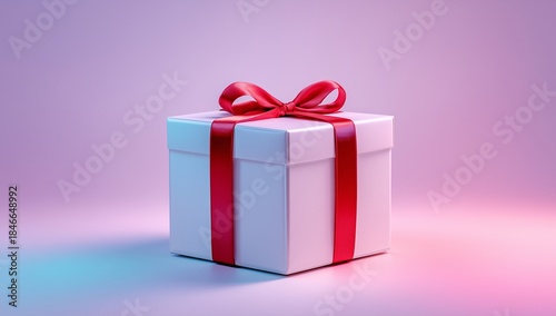 © Hyekyung, Fototapeta premium Blue Red Gift Box Ribbon Bow Present Pink Background Birthday