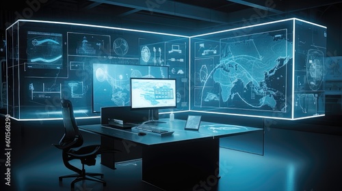 © NormanBalberan, Fototapeta premium Blue Reflections: Futuristic Computer with Minimalist Design 4. Generative AI