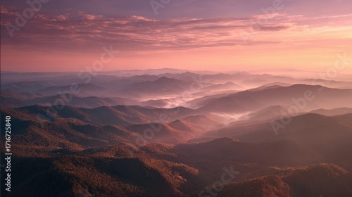 Fototapeta premium Blue Ridge Mountains at Sunrise with Mist