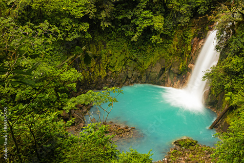 Naklejka premium blue Rio Celeste waterfall in the Tenorio National Park in Costa Rica