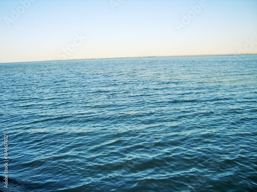 © Ольга Громова, Fototapeta premium blue river and blue sky separated by a horizon line