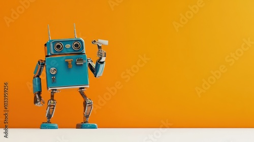 Fototapeta premium Blue Robot Holding a Blank Sheet of Paper