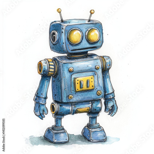 Fototapeta premium blue robot is excited and ready for adventure, full of curiousity