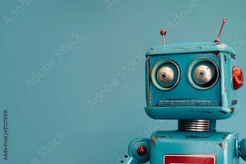 Fototapeta premium Blue robot with space for text: the future world of technology and innovation