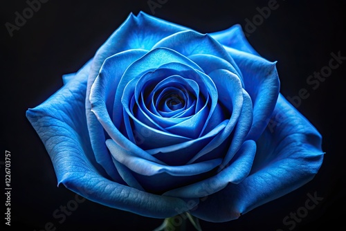 © Kaveepat, Obraz premium Blue Rose Black Background Deep Focus AI Photo, Stunning Blue Rose, Black Background, High Definition, Macro Photography