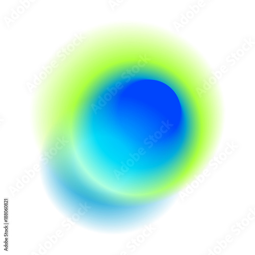 © laaisee, Obraz premium Blue round spot with round peacock colored texture. Green gradient circle isolated on white background. Turquoise blurred hole vector pattern.