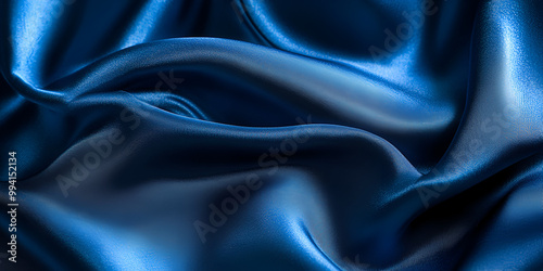© Doctor, Obraz premium Blue Satin Fabric Flowing Texture