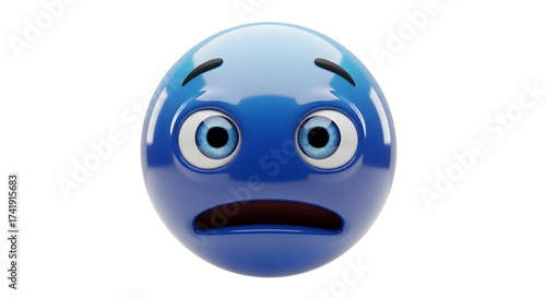© Muhammad Wasiq , Fototapeta premium Blue scared emoji isolated on white background with a shocked expression