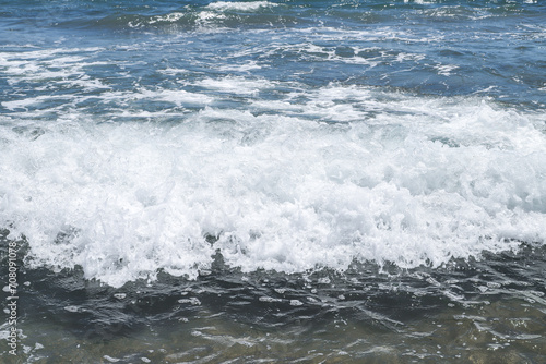 Fototapeta premium Blue sea and blue sky background. Summer sea and blue sky.