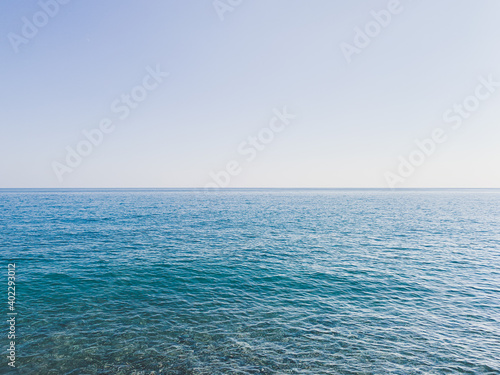 Obraz premium Blue sea and clear blue sky background