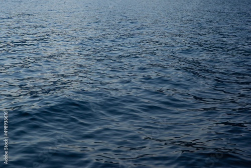 © vveronka, Naklejka premium Blue sea background, close-up. A backing with sea waves texture for branding, calendar, postcard, screensaver, wallpaper, poster, banner, cover, website. A place for your design or text