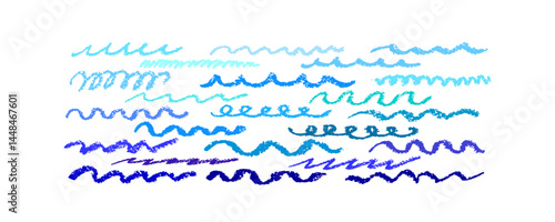 © Yauheniya_Bandaruk, Obraz premium Blue sea. Crayon hand drawn bg, vector wavy line