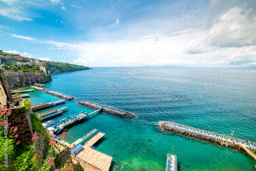 © Gabriele Maltinti, Obraz premium Blue sea in Sorrento shoreline on a cloudy day