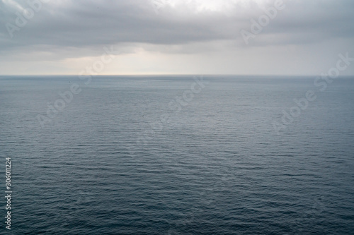Obraz premium Blue sea surface with small waves in cloudy day.