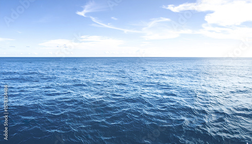 © Thanthara, Obraz premium Blue sea water with gentle waves under bright sky and scattered clouds