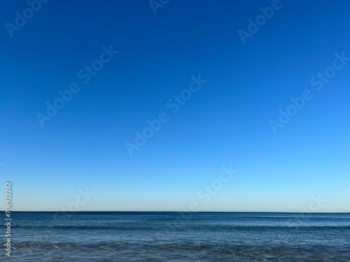 © Oksana, Obraz premium Blue seascape background, clear blue sky and blue sea horizon