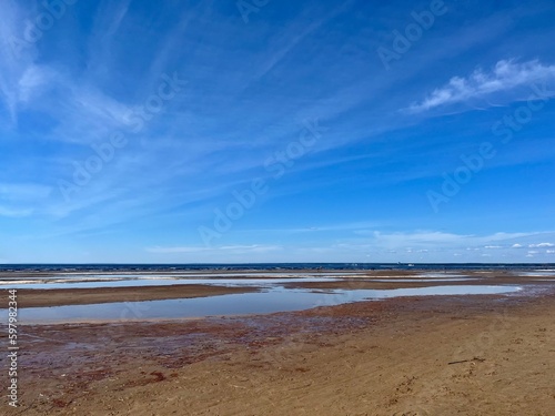 © Oksana, Fototapeta premium Blue seascape, sandy seascape, blue sky