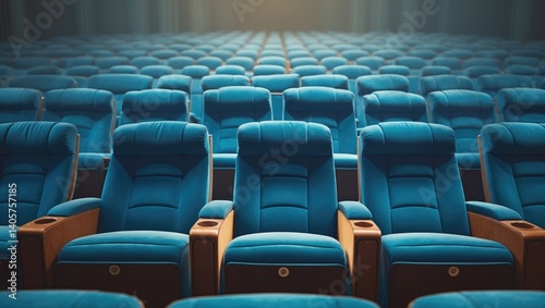 © Seyyar, Fototapeta premium Blue seating in a vacant conference room