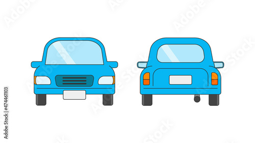 Fototapeta premium Blue sedan car illustration. Front view and back view.