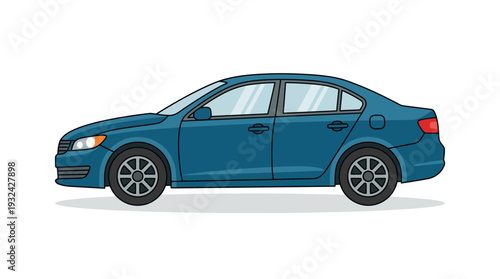 © Kanan, Fototapeta premium Blue Sedan Car Side View Illustration