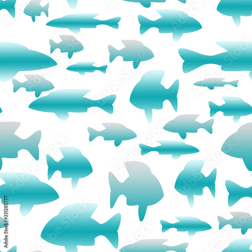 © Olena, Obraz premium Blue shark fish on a white background, seamless pattern