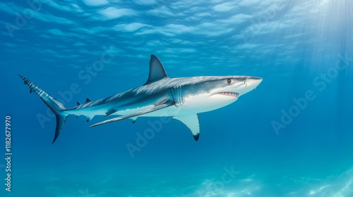 © Qaqas, Fototapeta premium Blue shark on a white background. Illustration of a shark vector.