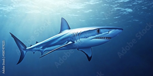 © ShStock, Fototapeta premium Blue Shark Prionace glauca swimming gracefully in the ocean, showcasing its beauty. This stunning Blue Shark represents the elegance and wonder of marine life. Experience the Blue Shark s charm.