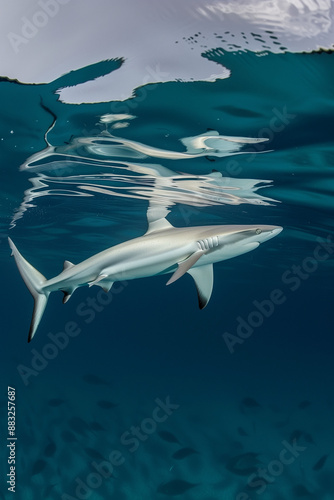 Fototapeta premium Blue shark swimming underwater
