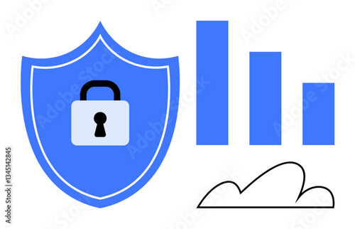 Fototapeta premium Blue shield with a lock symbol, bar chart, and cloud outline conveying data...