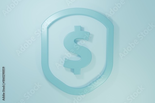 © Vadim, Obraz premium Blue Shield with dollar symbol icon isolated on blue background. Security shield protection. Money security concept. Minimalism concept. 3D render illustration