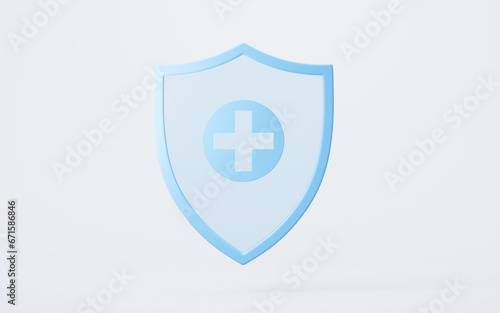 Obraz premium Blue shield with medical sign, 3d rendering.