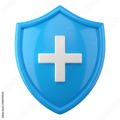 © RIFAT AHOMED MIYAZE, Fototapeta premium Blue shield with white cross symbol isolated on transparent background
