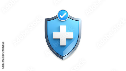 Fototapeta premium Blue shield with white cross symbol representing medical aid or health protection