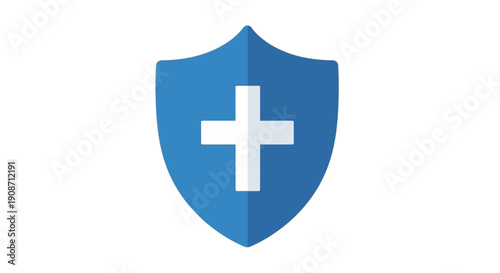 © Awaludin, Fototapeta premium Blue Shield with White Cross Symbolizing Health and Protection.